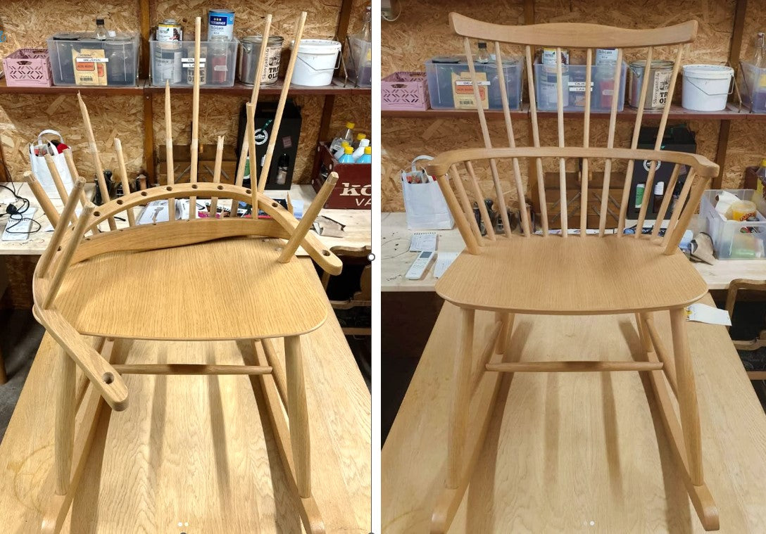 Vi fik drejet nye sprosser og limet stolen sammen igen